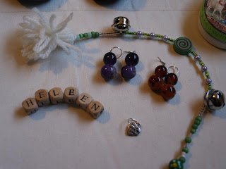 En natuurlijk de bol. Bollén in mijn geval (handig om 2 sokken tegelijk te breien, zoals ik het liefst doe). Vol met kadootjes. Heel spannend, want het rammelt aan alle kanten.